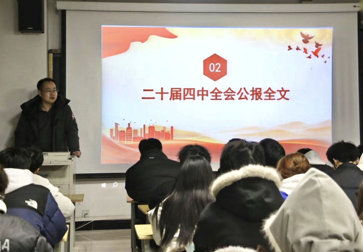 12月5日,學(xué)院黨總支書記黃述杰率先開展專題培訓(xùn),圍繞黨的二十屆四中全會召開的時(shí)代背景、重大意義和核心要義進(jìn)行系統(tǒng)解讀,全體黨員及入黨積極分子參會學(xué)習(xí)。黃述杰強(qiáng)調(diào),要持續(xù)深化黨的創(chuàng)新理論武裝,將學(xué)習(xí)貫徹黨的二十屆四中全會精神與學(xué)習(xí)貫徹習(xí)近平新時(shí)代中國特色社會主義思想緊密結(jié)合,切實(shí)把學(xué)習(xí)成果轉(zhuǎn)化為推動(dòng)工作的實(shí)際成效;要縱深推進(jìn)“四個(gè)突出”戰(zhàn)略發(fā)展思路,緊扣鑄牢中華民族共同體意識主線,錨定“十個(gè)較強(qiáng)”發(fā)展目標(biāo),推動(dòng)“鑄牢”工作全面融入專業(yè)建設(shè)、教書育人全過程各方面;要聚焦教育教學(xué)主責(zé)主業(yè),持續(xù)深化“大學(xué)風(fēng)”建設(shè)與課程思政改革,著力在抓落實(shí)、抓基層、抓學(xué)風(fēng)上實(shí)現(xiàn)新突破、取得新成效。