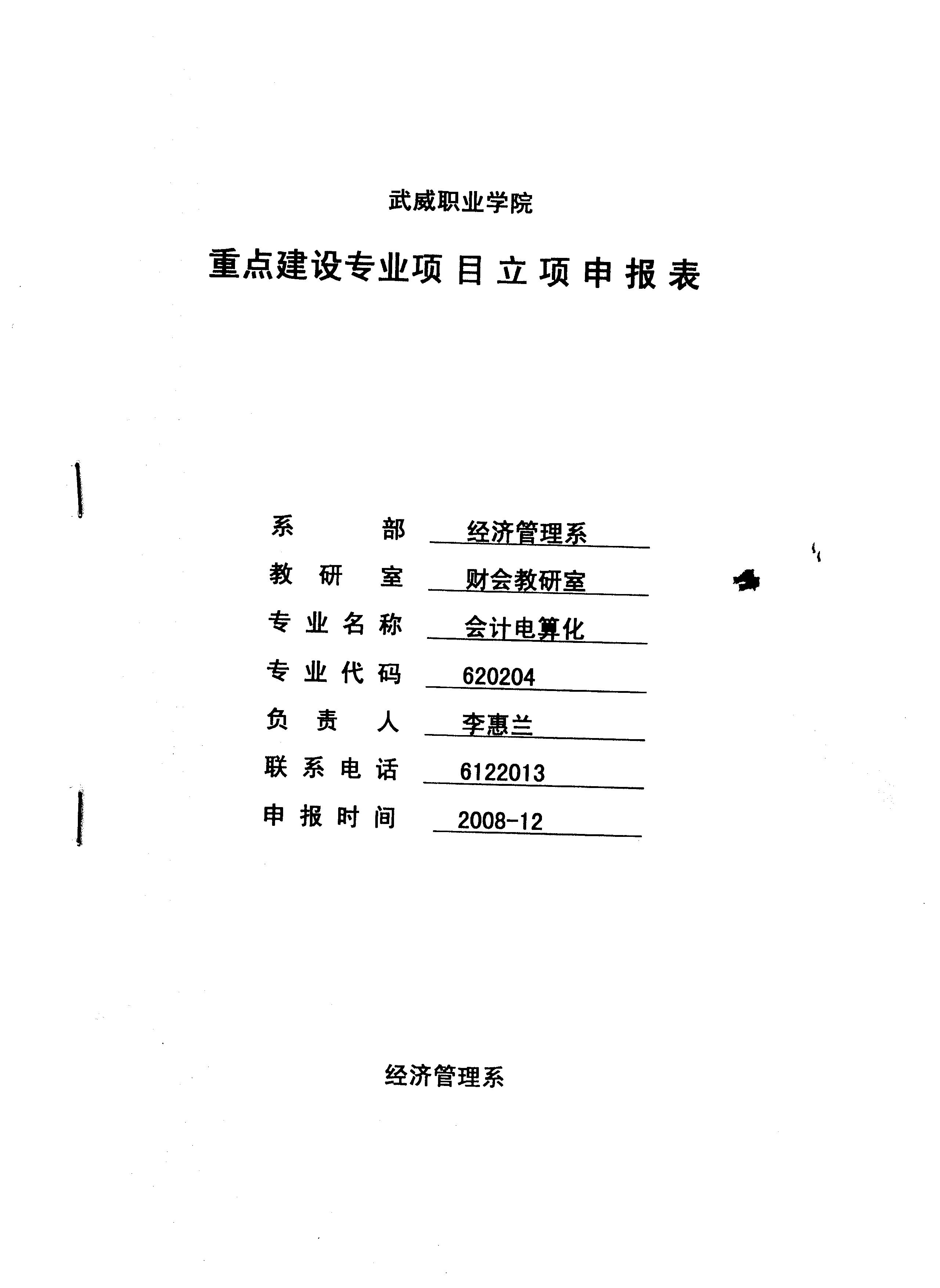 院級重點(diǎn)專業(yè)——會計(jì)專業(yè)申報表