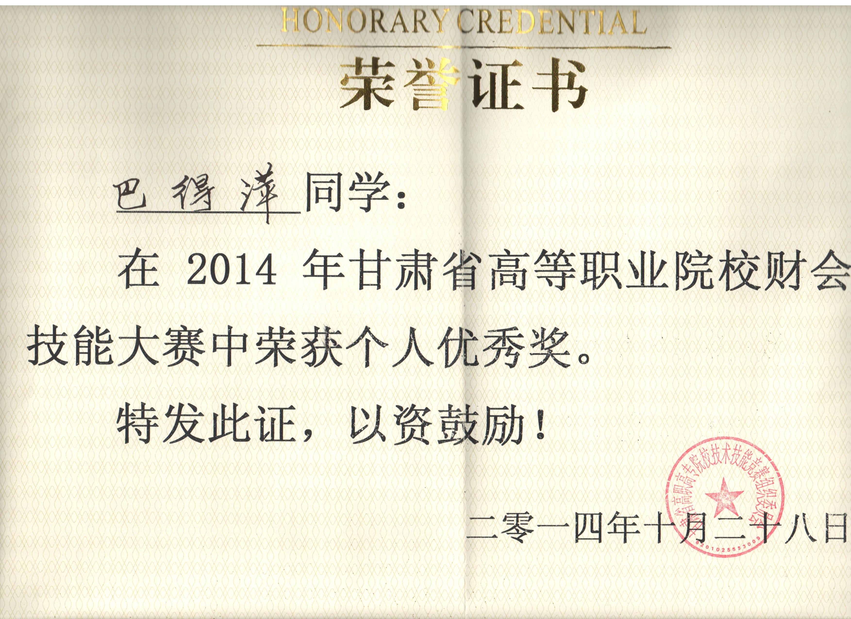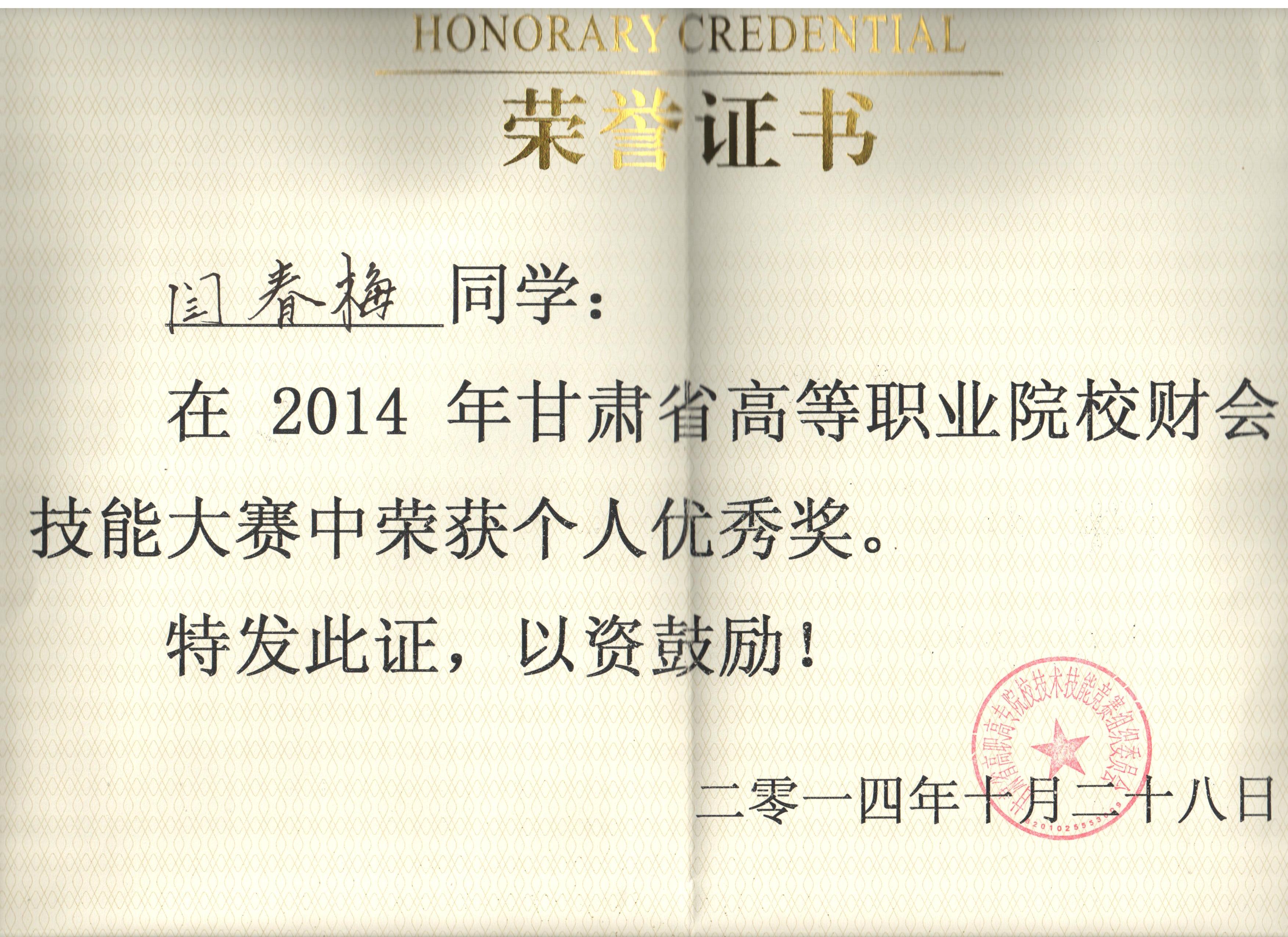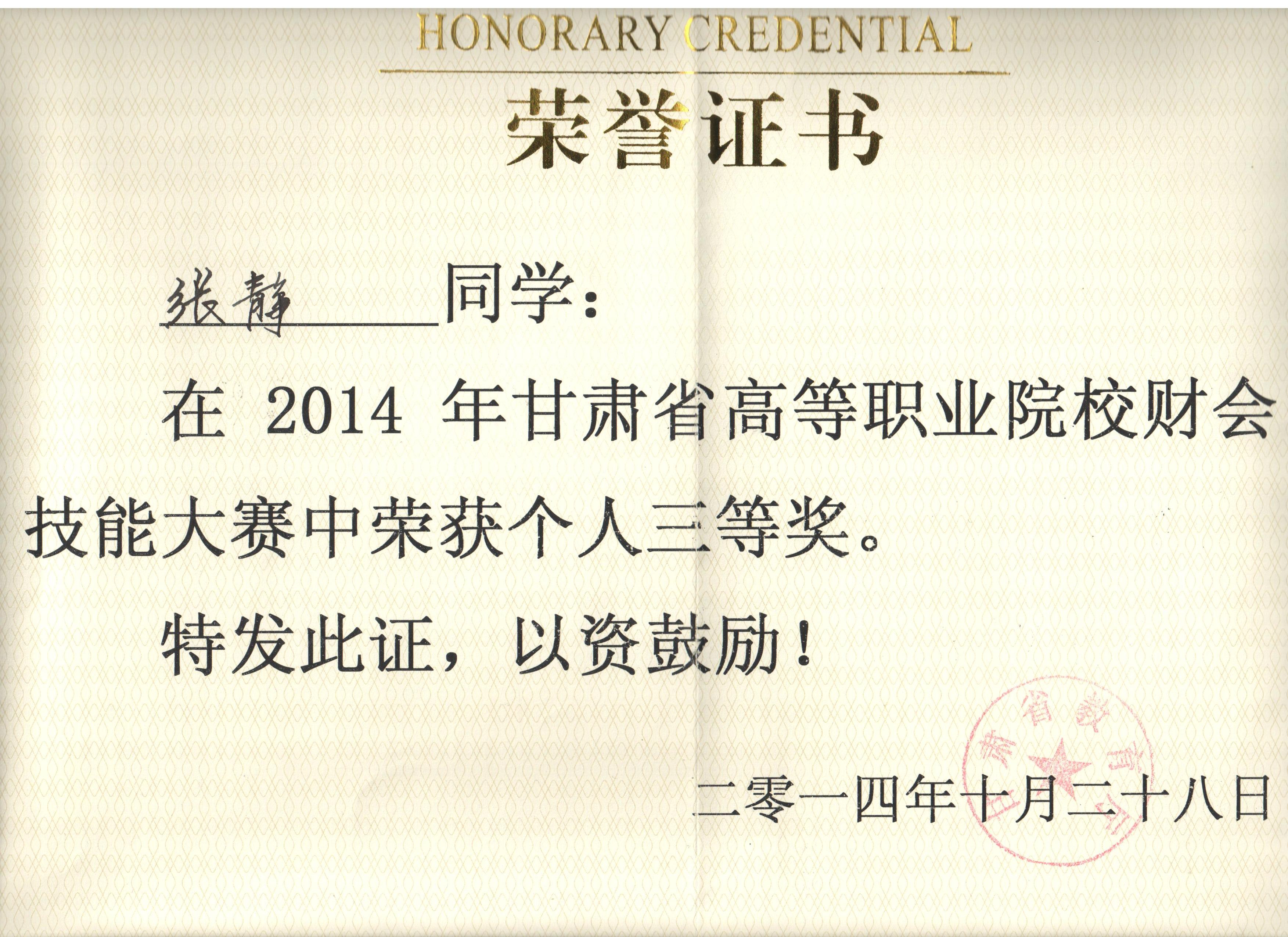 經(jīng)濟管理系李惠蘭、賀德赟老師指導(dǎo)我系會計專業(yè)學(xué)生參加2014年甘肅省高等職業(yè)學(xué)院財會技能大賽,榮獲優(yōu)秀獎。