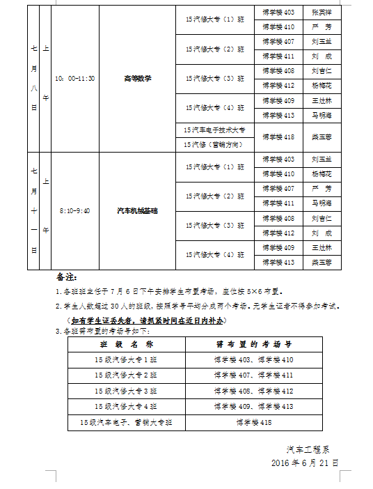 2015-2016學(xué)年第二學(xué)期期末考試監(jiān)考安排