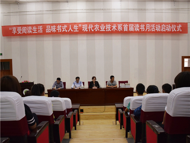 為營造“書香系部”,現(xiàn)代農(nóng)業(yè)技術(shù)系舉辦首屆讀書月活動,并于5月19日在尚德樓正徳廳舉行了“享受閱讀生活,品味書式人生”讀書月活動啟動儀式。我系全體專兼職教師,設(shè)施農(nóng)業(yè)技術(shù)、綠色食品生產(chǎn)與檢測、種子生產(chǎn)與經(jīng)營3個專業(yè)近300名學(xué)生參加了本次活動。
