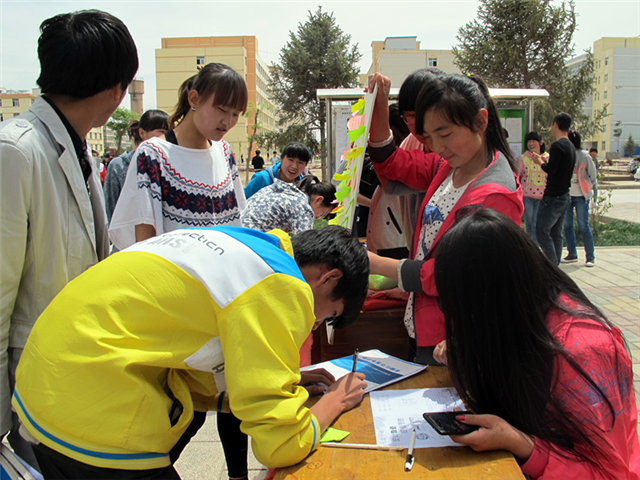 我系青年志愿者在校園設(shè)立了固定宣傳位,設(shè)計制作了展板,開展了“讓我們一起光盤吧”簽字征集活動,并在食堂餐桌上張貼光盤行動的小便簽,與前來就餐的同學互動。此外,志愿者還利用網(wǎng)絡(luò)社交平臺、微博、微信等新媒體進行宣傳,深化了青年志愿者精神、踐行了文明新風、收到了良好的效果,。