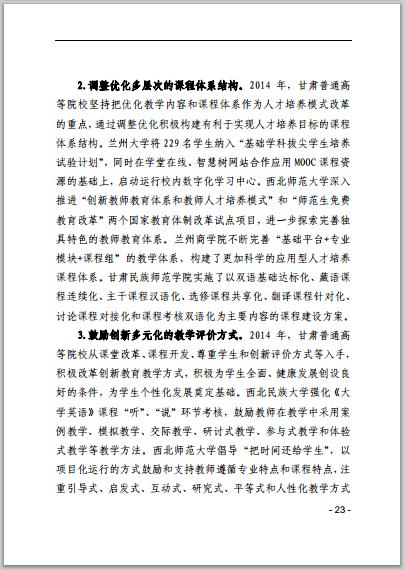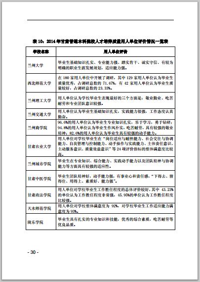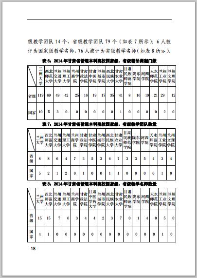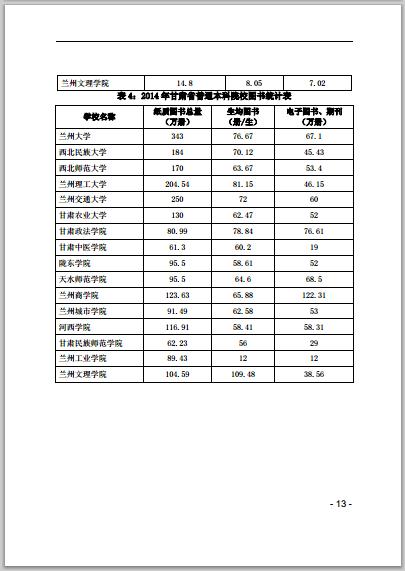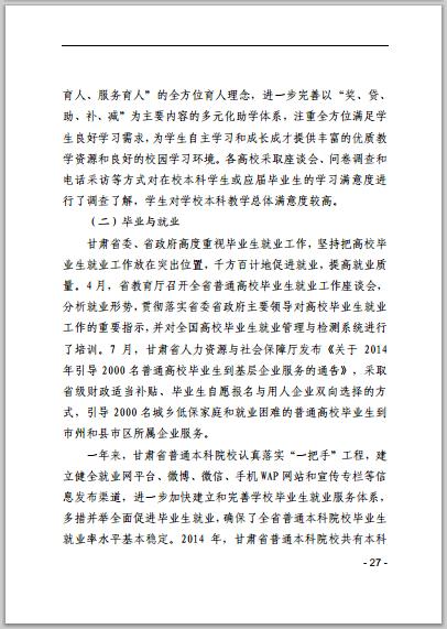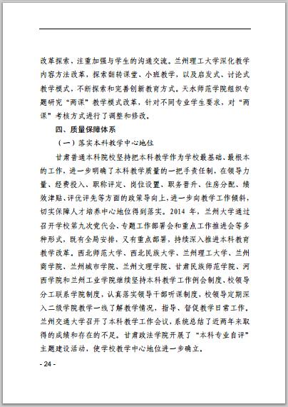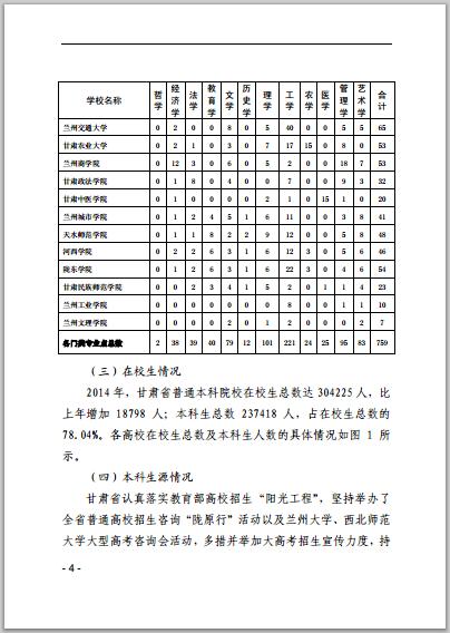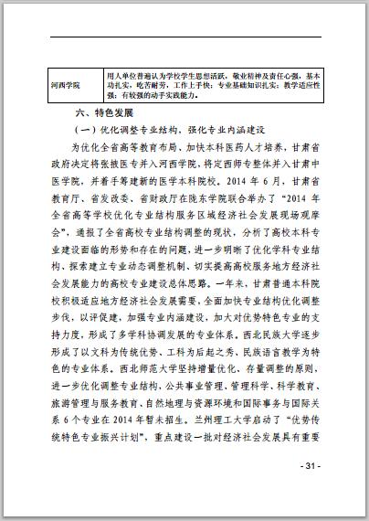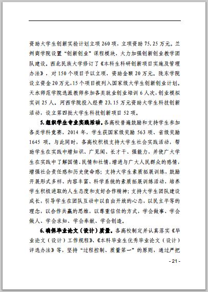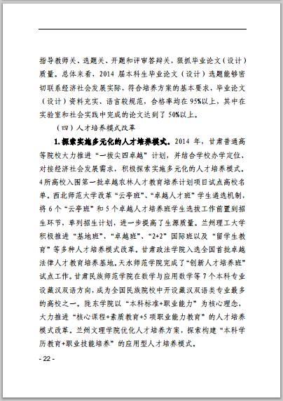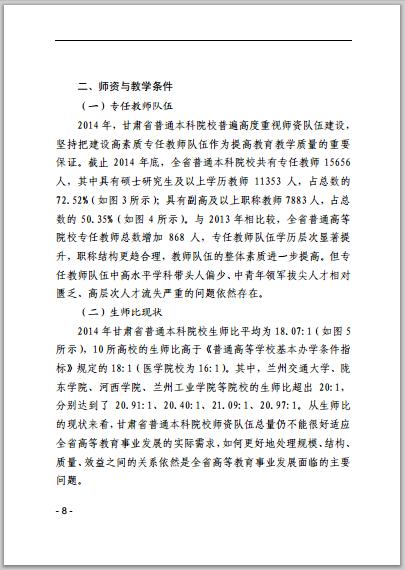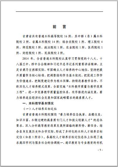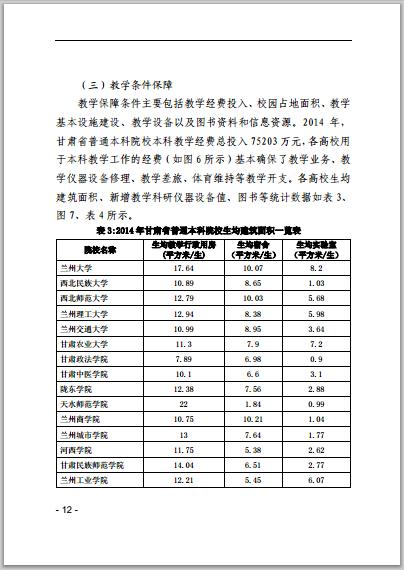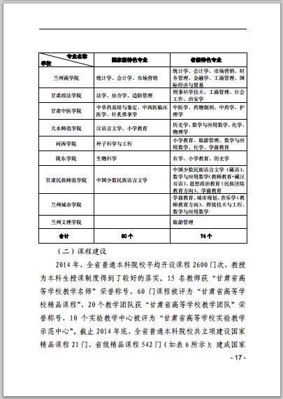 甘肅省普通高等學(xué)校2014年本科教學(xué)質(zhì)量報告