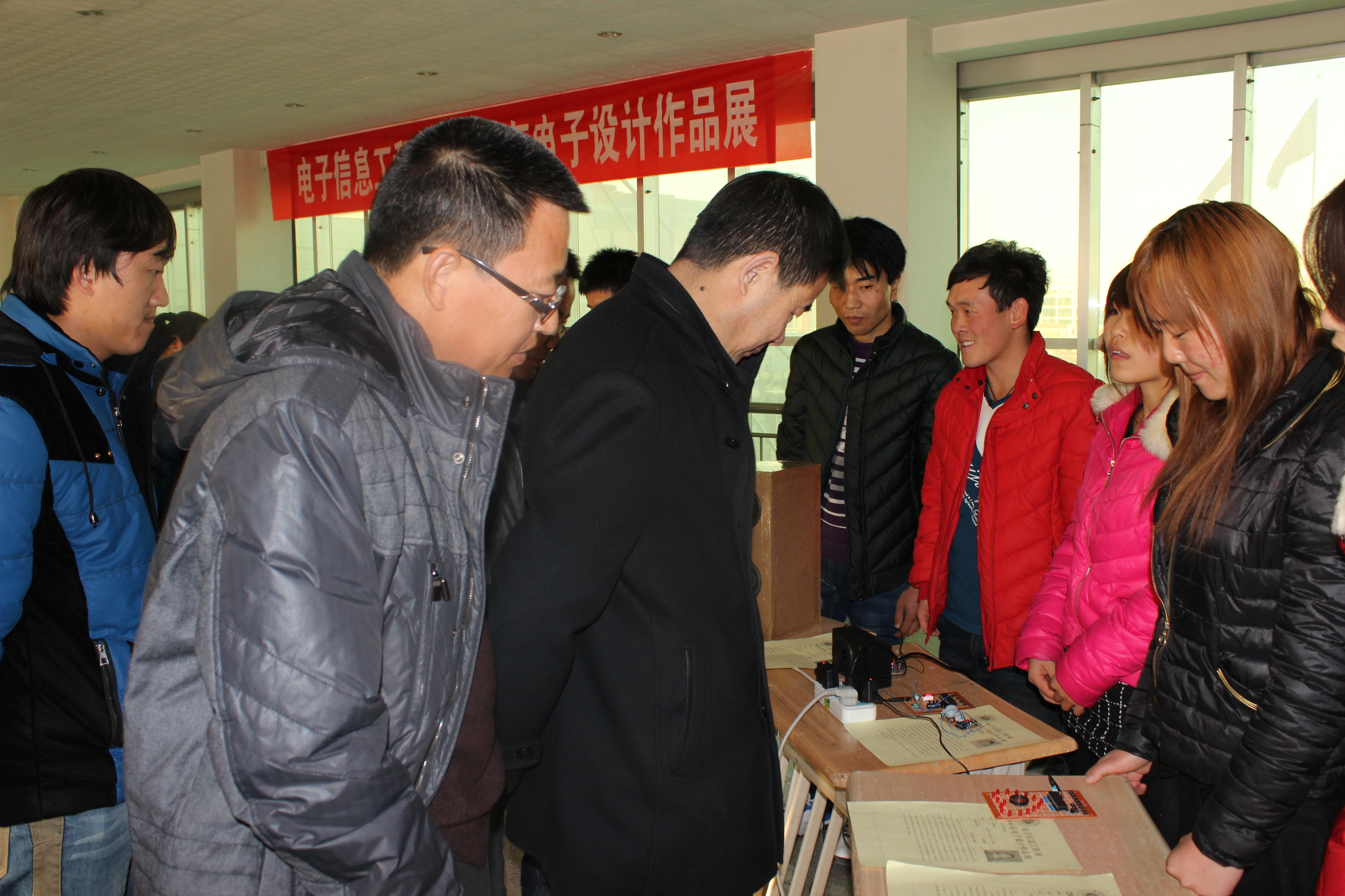 為豐富大學(xué)生課余生活,使更多的同學(xué)了解電子,走進電子,培養(yǎng)學(xué)生對電子產(chǎn)品的興趣及實際操作能力,近日,我系成功舉辦電子制作與設(shè)計作品展。學(xué)院翟存祥副院長,教務(wù)處魏潤明處長,電信系蔣偉主任、張伯成書記蒞臨展區(qū)詳細詢問了電子作品設(shè)計與制作情況。