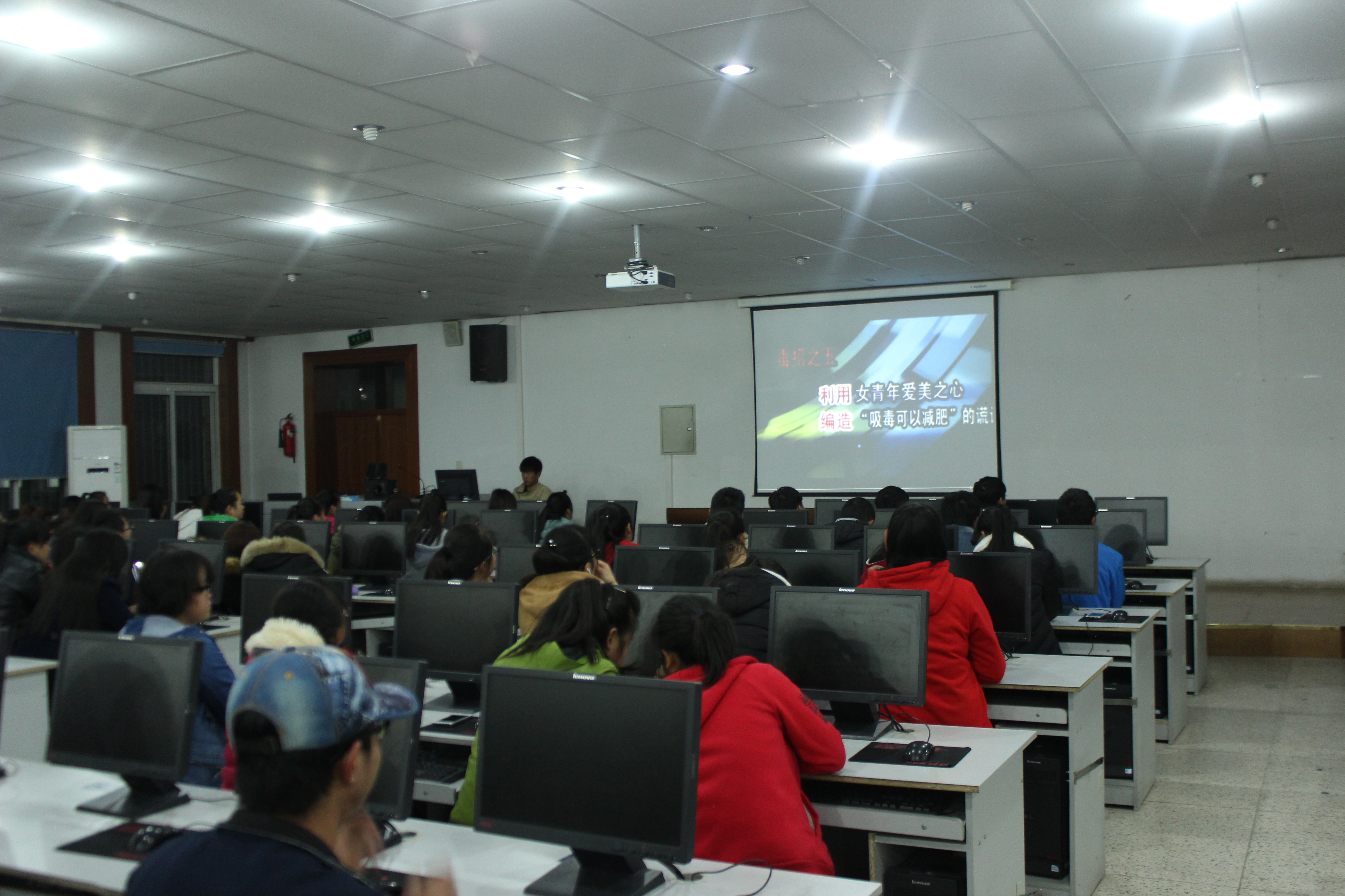 2.組織學(xué)生觀看中國禁毒網(wǎng)相關(guān)禁毒教育動(dòng)畫、視頻。讓同學(xué)們了解吸毒的危害,讓吸毒人員的痛苦活生生地展現(xiàn)在學(xué)生面前,學(xué)生親眼目睹了吸毒人員的生活,親耳聆聽了吸毒人員的述說,這些都深深震撼了我們學(xué)生的心靈,通過這樣場面,學(xué)生對毒品有了更深刻的認(rèn)識(shí),對吸毒的危害有了深刻的體會(huì)。通過觀看毒品危害相關(guān)教育視頻,同學(xué)們都表達(dá)了拒毒、禁毒的決心,表示積極打擊吸、販毒行為,讓毒品在我們的生活中消失。