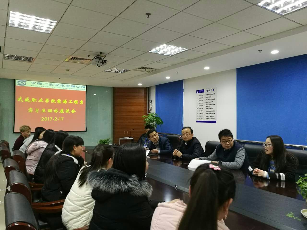為全面掌握學(xué)生頂崗實習(xí)情況,解決學(xué)生實習(xí)就業(yè)中存在的問題,進(jìn)一步做好學(xué)生頂崗實習(xí)工作。2月14日至18日,我系黨總支書記黃文源帶隊前往福建泉州陽光中科能源股份有限公司和安徽蕪湖三安光電科技有限公司對我系2014級頂崗實習(xí)學(xué)生進(jìn)行了回訪。