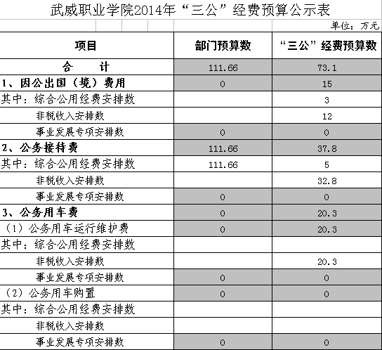 武威職業(yè)學(xué)院2014年“三公”經(jīng)費(fèi)預(yù)算公示表