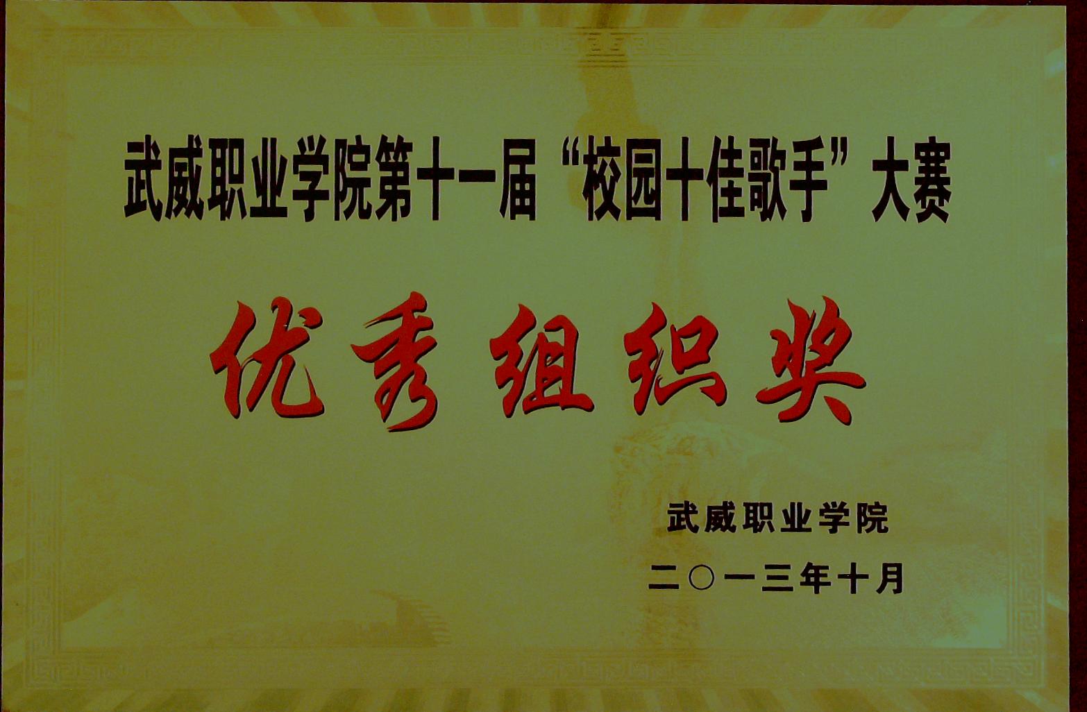第十一屆“校園十佳歌手”大賽優(yōu)秀組織獎(jiǎng)