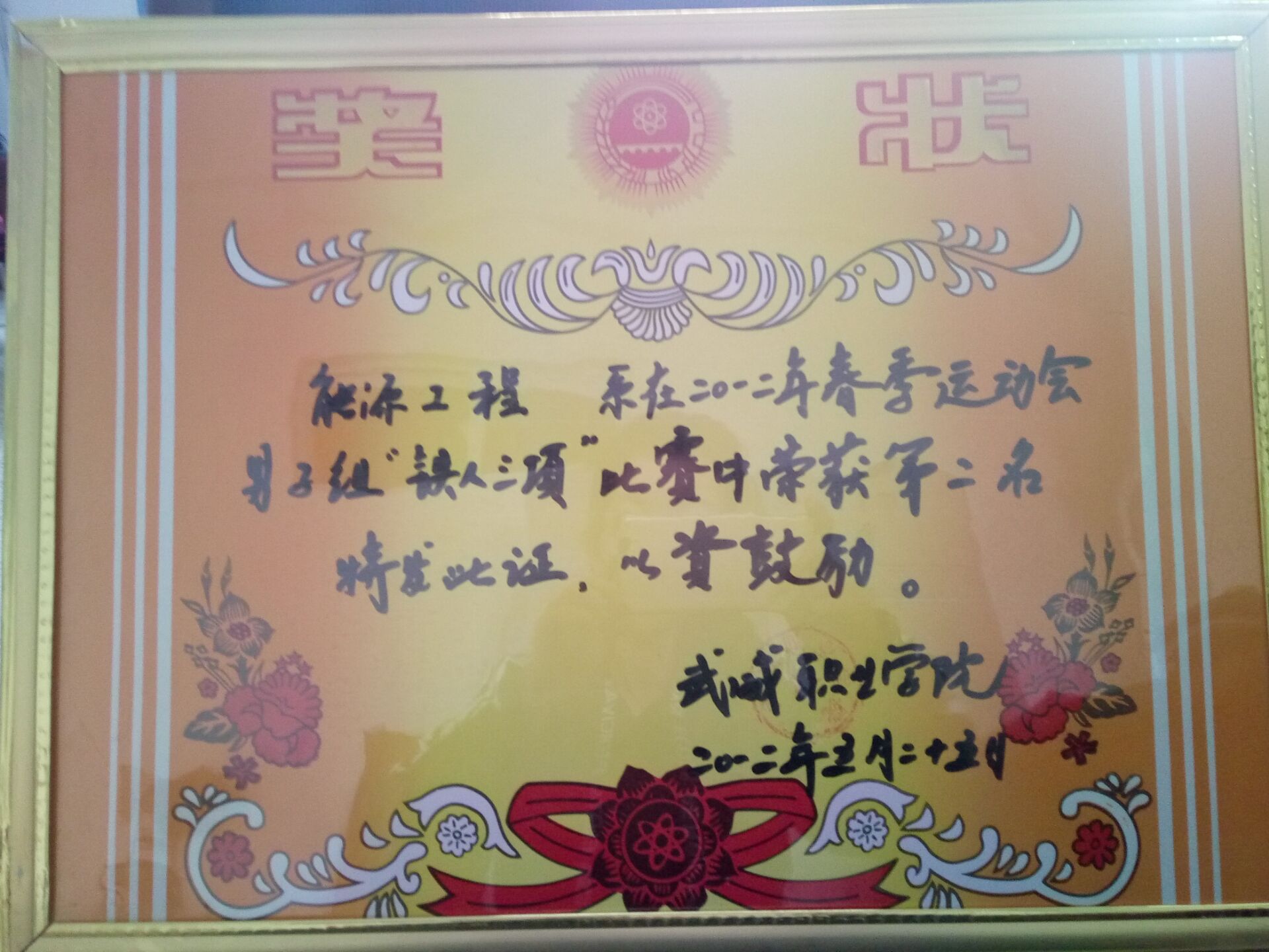 我系代表隊在2012年春季運動會“團(tuán)結(jié)一心”比賽榮獲第二名