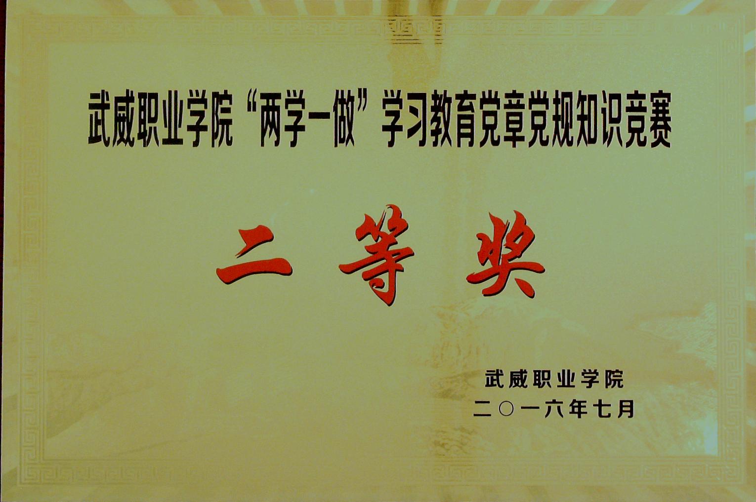 兩學一做學習教育黨章黨規(guī)知識競賽二等獎