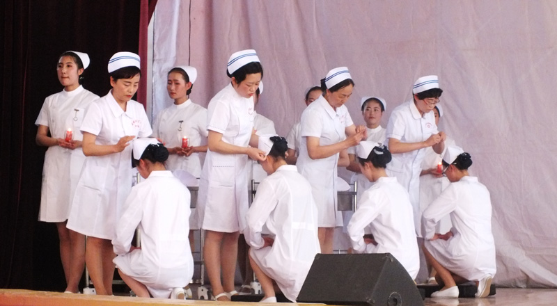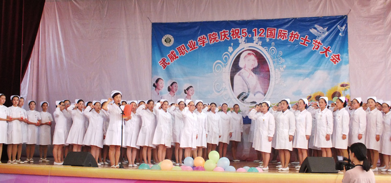 為繼承和弘揚南丁格爾精神,積極推動護理專業(yè)人才建設(shè)和職業(yè)內(nèi)涵塑造,展示我院護理專業(yè)師生風(fēng)采,在第106個國際護士節(jié)來臨之際,學(xué)院于5月12日下午在大禮堂隆重舉辦了慶祝國際護士節(jié)活動,武威市衛(wèi)生計生委副主任潘玉華、學(xué)院黨委副書記趙明、紀委書記張富國、副院長王永緒、直屬附屬醫(yī)院護理部主任、相關(guān)處室領(lǐng)導(dǎo)及護理系全體師生1200余人參與了本次活動?;顒影ㄗo士授帽儀式,護理實踐技能操作表演,第四屆護理技能大賽頒獎,慶祝“5.12”護士節(jié)文藝演出等內(nèi)容。