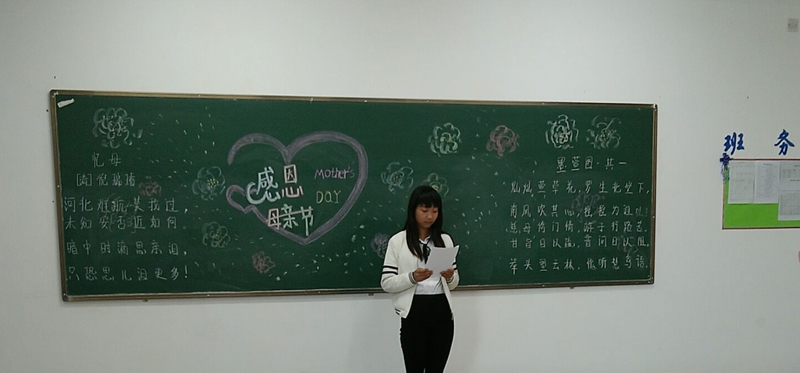 5月14日我系組織各班級(jí)舉辦“感恩5月”為主題的演講活動(dòng)。班會(huì)上各班代表結(jié)合自己經(jīng)歷講述了一個(gè)個(gè)扣人心弦的故事,讓每位同學(xué)再一次體會(huì)親情的無私和偉大,讓同學(xué)們學(xué)會(huì)感恩,學(xué)會(huì)用心關(guān)愛,讓愛心源源不斷地傳遞。