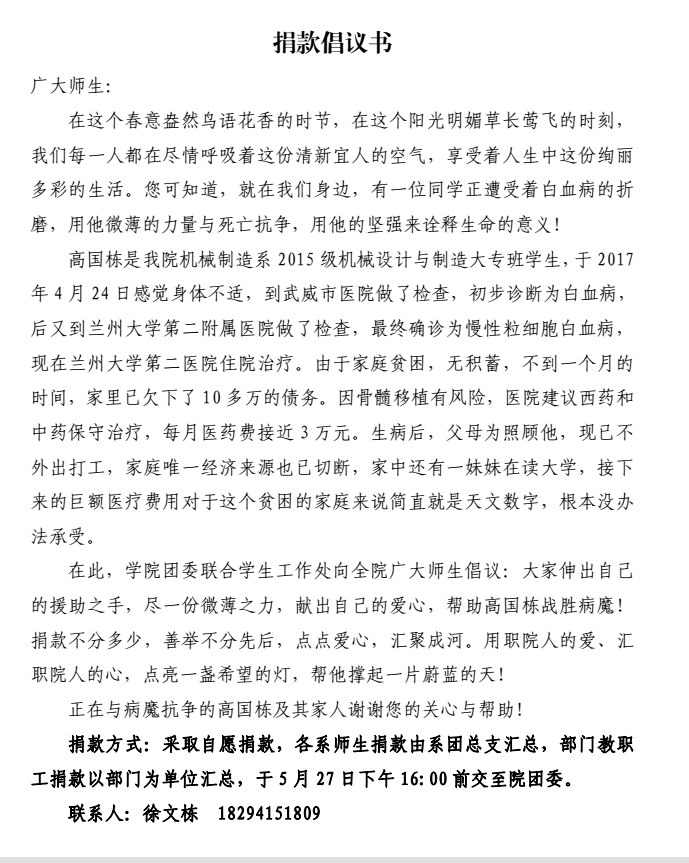藥學(xué)系為高國棟同學(xué)捐款公示
