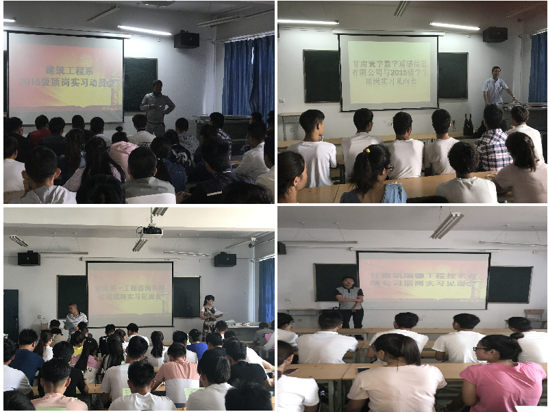 6月8日至16日,甘肅寰宇數(shù)字遙感信息有限公司、甘肅新一工程咨詢有限公司、國(guó)誠(chéng)集團(tuán)、蘭州凱瑞德工程有限公司、武威盛大集團(tuán)等實(shí)習(xí)接收單位派專人來(lái)校,舉辦企業(yè)宣講會(huì),詳細(xì)地介紹了用人單位的管理制度、日常生活、工作崗位、薪酬待遇等,并與系上洽談了學(xué)生頂崗實(shí)習(xí)合作辦法、責(zé)任義務(wù)、安全保障、就業(yè)等方面的合作細(xì)節(jié)。