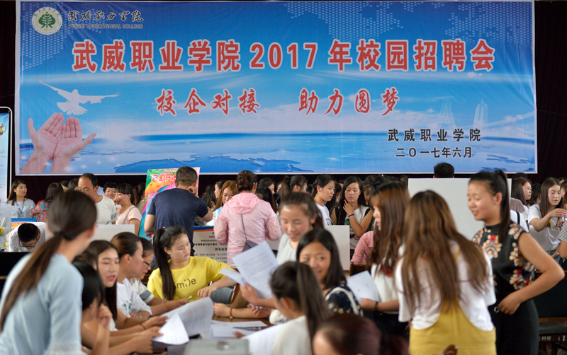 為切實做好學院畢業(yè)生就業(yè)工作,大力構建畢業(yè)生與用人單位的交流平臺,積極為用人單位輸送應用型人才,6月27日上午,在學院大禮堂舉行了我院2017年校園招聘會。此次招聘會參會企業(yè)共80多家,其中武威當?shù)仄髽I(yè)12家,省內企業(yè)33家,外地企業(yè)40多家。招聘會提供就業(yè)崗位1500多個,招聘崗位涉及了機械制造、信息工程、能源化工、醫(yī)藥衛(wèi)生、經濟管理、學前教育、市場營銷、現(xiàn)代農業(yè)等行業(yè),參加應聘學生近3000人次,現(xiàn)場意向性簽約800多人。