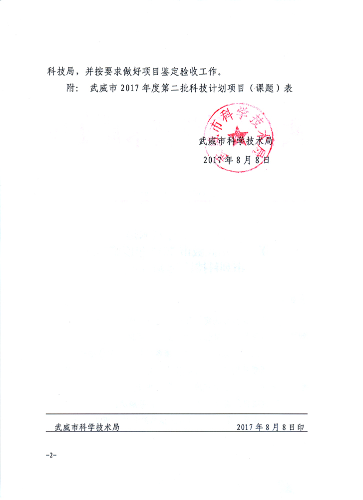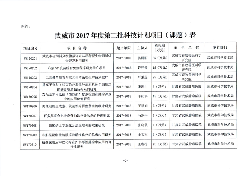 轉(zhuǎn)發(fā)武威市科學(xué)技術(shù)局關(guān)于下達(dá)武威市2017年度第二批市列科技計劃項目的通知