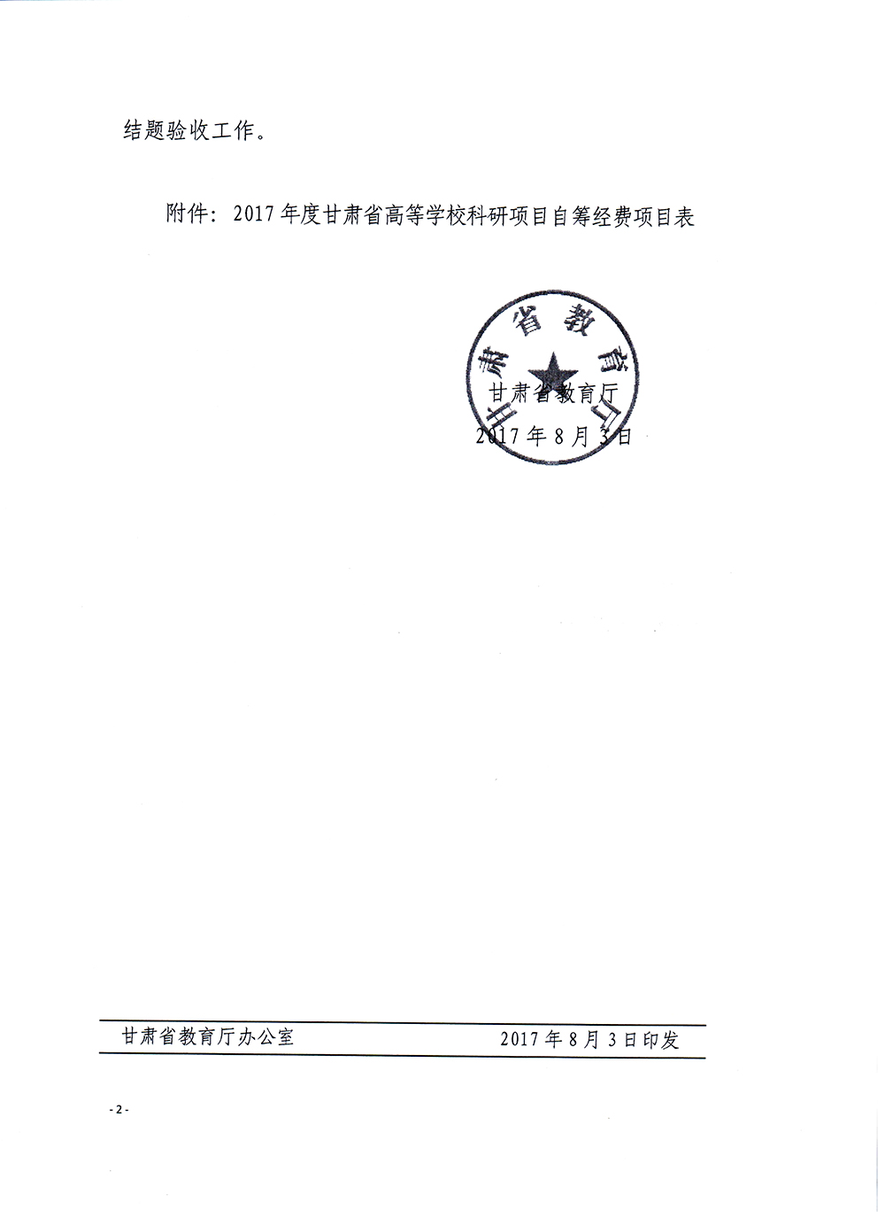 轉(zhuǎn)發(fā)甘肅省教育廳《關(guān)于下達2017年度甘肅省高等學??蒲许椖孔曰I經(jīng)費項目的通知》