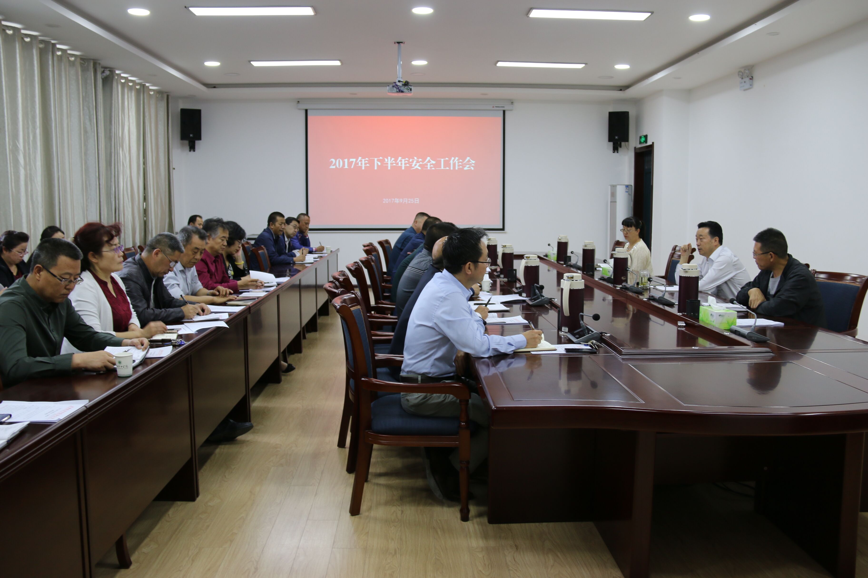 9月25日下午,學(xué)院召開2017年下半年安全工作會(huì)議,院長宗瑞謙,副院長王永緒、田迎春出席會(huì)議,學(xué)院各部門、單位負(fù)責(zé)同志參加會(huì)議。