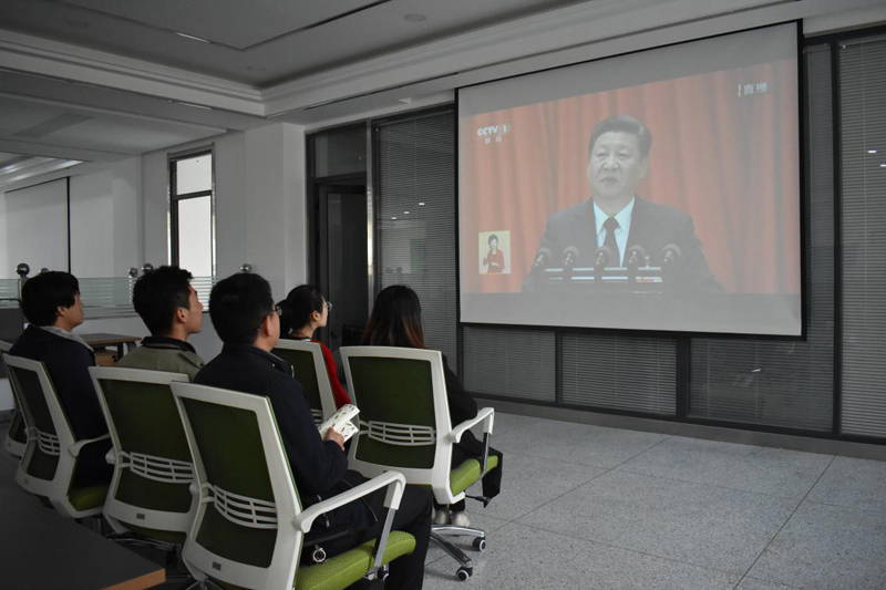 10月18日上午9時,雙創(chuàng)中心負(fù)責(zé)人胡建宏在行樹樓210會議室與學(xué)院部門負(fù)責(zé)人集中觀看了黨的十九大開幕會盛況,其他兩位教師孟建文、司玲帶領(lǐng)學(xué)生在雙創(chuàng)中心辦公室收看開幕會盛況和習(xí)近平總書記的報告,認(rèn)真學(xué)習(xí)領(lǐng)會十九大精神。