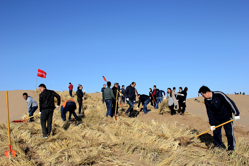 直屬附屬醫(yī)院組織干部職工赴八十里大沙參加義務(wù)壓沙治沙勞動(dòng)