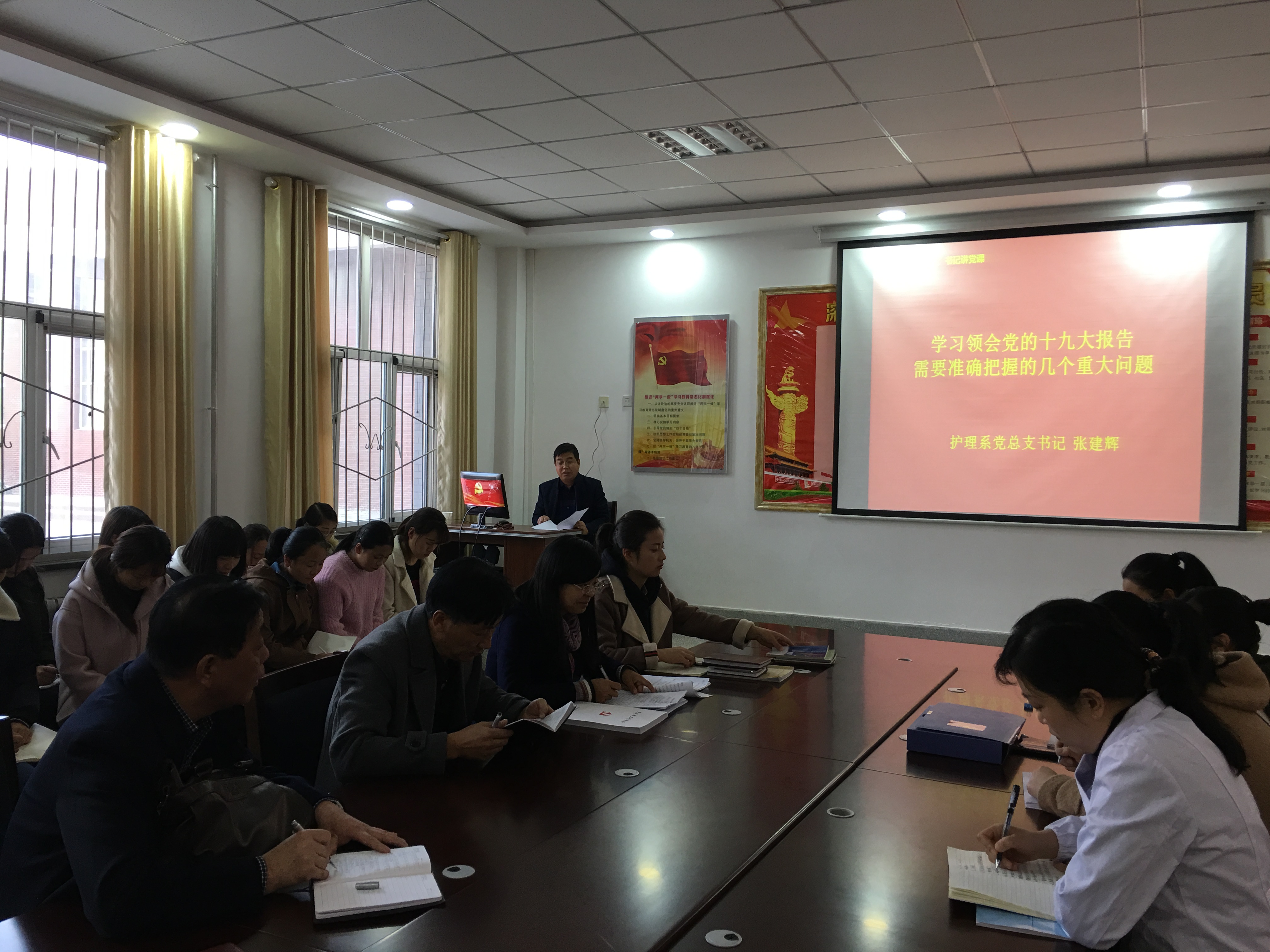 護(hù)理系黨總支結(jié)合實(shí)際,利用多種形式組織黨員學(xué)習(xí)和領(lǐng)會(huì)黨的十九大精神,針對(duì)不同黨員的實(shí)際情況,通過(guò)組織開(kāi)展集中學(xué)習(xí)、黨員自學(xué)、支部書(shū)記宣講、專題研討等形式將學(xué)習(xí)宣傳貫徹黨的十九大精神落到實(shí)處,同時(shí)將學(xué)習(xí)宣傳貫徹黨的十九大精神與我系教育教學(xué)工作相結(jié)合,加強(qiáng)基層黨組織組織建設(shè),推動(dòng)優(yōu)質(zhì)高職院校建設(shè)工作全方面有序開(kāi)展。(供稿:護(hù)理系??? 審核:張建輝???? 撰稿:寇明赟??? 圖片:寇明赟)