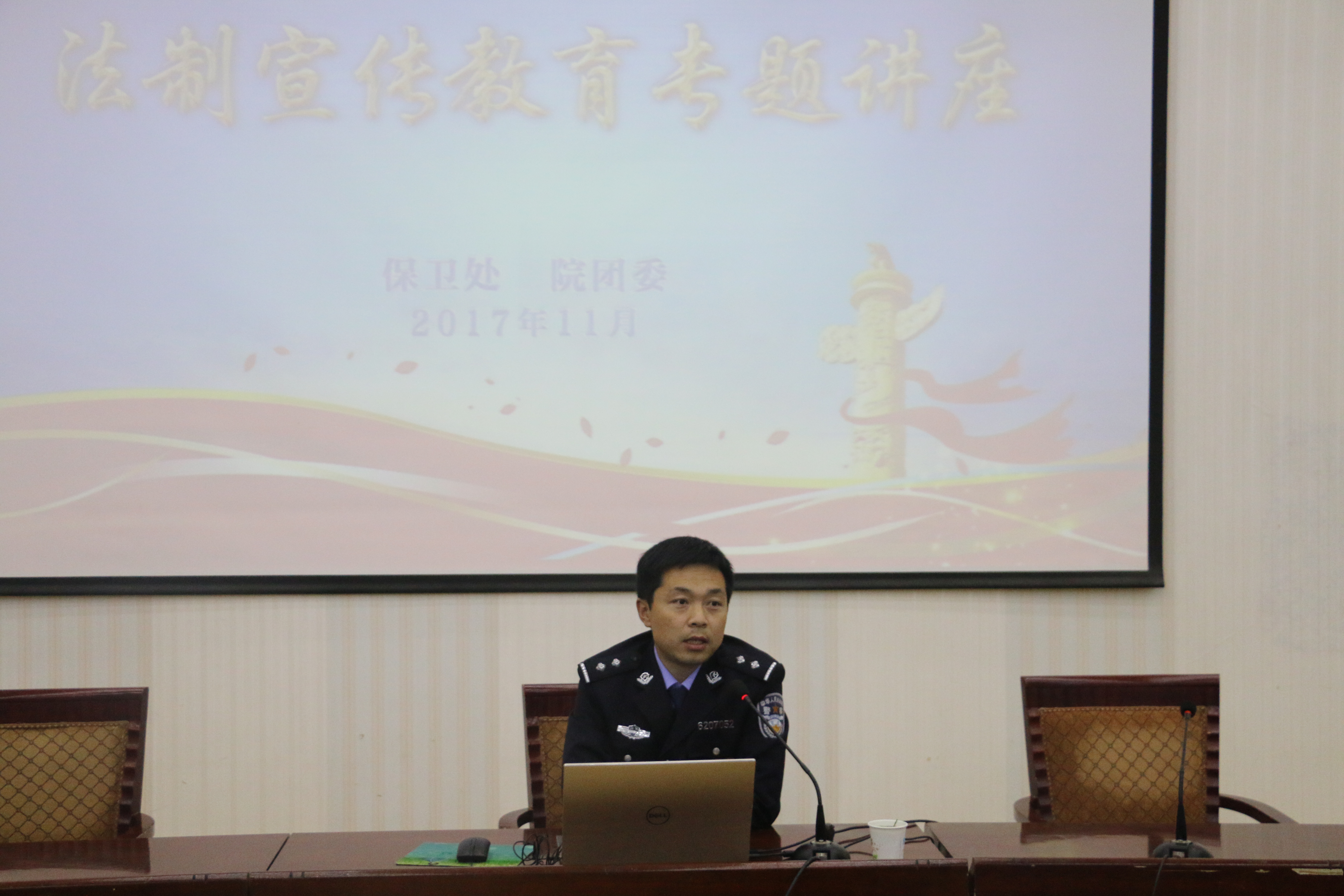 為增強學生法律意識,維護校園安全穩(wěn)定,11月23日下午,保衛(wèi)處和院團委聯(lián)合舉辦了大學生法制教育專題講座。